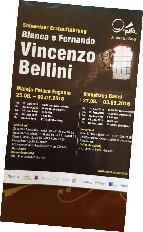 CLEMENTE – aus der Oper BIANCA E FERNANDO von V.Bellini – ist ein Verbündeter des Guten. In der Regie von Peter George d’Angelino Tap spielt er die Rolle als Vermittler zwischen Gut und Böse und schafft es am Schluß der Oper der guten Seite zum Sieg zu verhelfen. Ein Happy End ohne Kampf und ohne Blut vergießen. Opera St. Moritz, Opera Basel