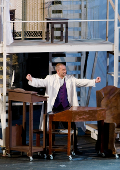IL DOTTOR BARTOLO – dall’opera IL BARBIERE DI SIVIGLIA di Gioacchino Rossini – è un dottore anziano e colerico, ma anche amabile (almeno nell’allestimento di Hugo Wieg), che vuole sposare a tutti i costi la sua pupilla Rosina (“per forza o per amore avrà da cedere”). Il suo antagonista è il conte di Almaviva, che, con l’aiuto di Figaro, fa la corte alla giovane donna sotto vari travestimenti. Un’opera divertentissima… in cui alla fine sembra vincere il vero amore. Musiktheater Vorarlberg, Österreich