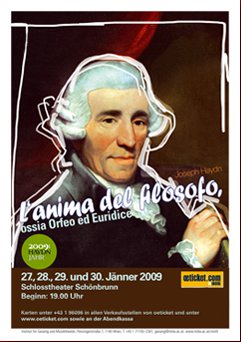 PLUTONE e CORISTA (L’ANIMA DEL FILOSOFO, J. Haydn). Plutone, padrone degli inferi, concede ad Orfeo un’ultima possibilità per restituire l’amata Euridice al mondo dei vivi, chiedendogli di non voltarsi indietro a guardarla durante il viaggio verso la terra. Orfeo fallisce. Poiché Plutone compare solo verso la fine dell’opera, Riccardo Di Francesco ha potuto incarnare anche un altro ruolo, quello del CORISTA, ovvero del narratore che racconta la storia. Schlosstheater Schönbrunn, Vienna, Austria